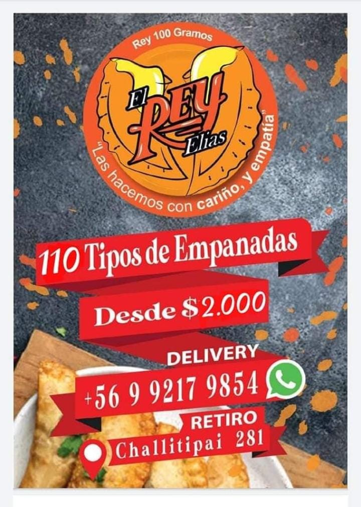 El Rey de los 100 gramos es un proyecto iniciado, en JuNio del año 2016, por el Técnico en Ventas, Publicista, e Ingeniero en Gestión de Marketing Elías Gonzalez Alé, quien comenzó esta aventura con la Empanada frita más demandada la de queso solo, la que está preparada con 120 gramos de Queso gauda de la mejor calidad, en formato normal, y 200 gramos en version XL, la cual provoca un sabor, y un contenido incomparable, todo esto lo llevó al reconocimiento dentro del segmento de mercado dirigido, con el tiempo ya se cuenta con más de 100 tipos de Empanadas Frirtas, masa de Hojaldre, y masa de Horno, las cuales día a día dieron que hablar en su momento en el sector Poniente de la capital (Pudahuel), y ahora también presentes en Curacaví. La gran cantidad de contenido en cada una de las preparaciones, y el valor bajo en comparación al resto del mercado, lo hacen ser el numero uno a través del tiempo.